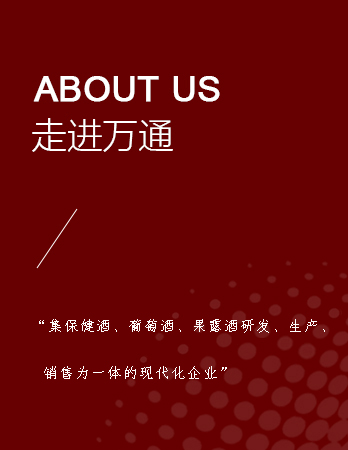 通化萬(wàn)通葡萄酒股份有限公司是吉林萬(wàn)通集團(tuán)所屬的全資控股子公司,是集葡萄酒、保健酒、果露酒、配制酒、飲料、白酒等六大品類研發(fā)、生產(chǎn)、銷售為一體的現(xiàn)代化規(guī)模企業(yè)。公司坐落于素有“中國(guó)葡萄酒之鄉(xiāng)”“葡萄酒城”美譽(yù)的吉林省通化市二道江區(qū)。公司2000年建廠,2011年11月1日被萬(wàn)通集團(tuán)重組收購(gòu),企業(yè)發(fā)展步入新紀(jì)元,興建了具有法國(guó)特色的…...